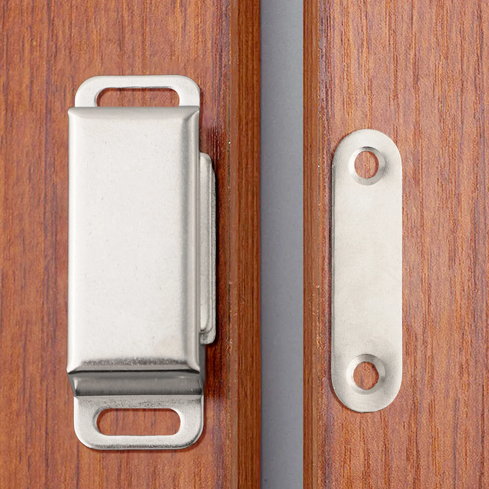 *Easy Positioning: Mounting the two elliptical holes firstly, in order to adjust place to suit closing. So you don't worry about whether it could be difficult to locate the mount exactly. Ultra-thin sheet strike plates are included.