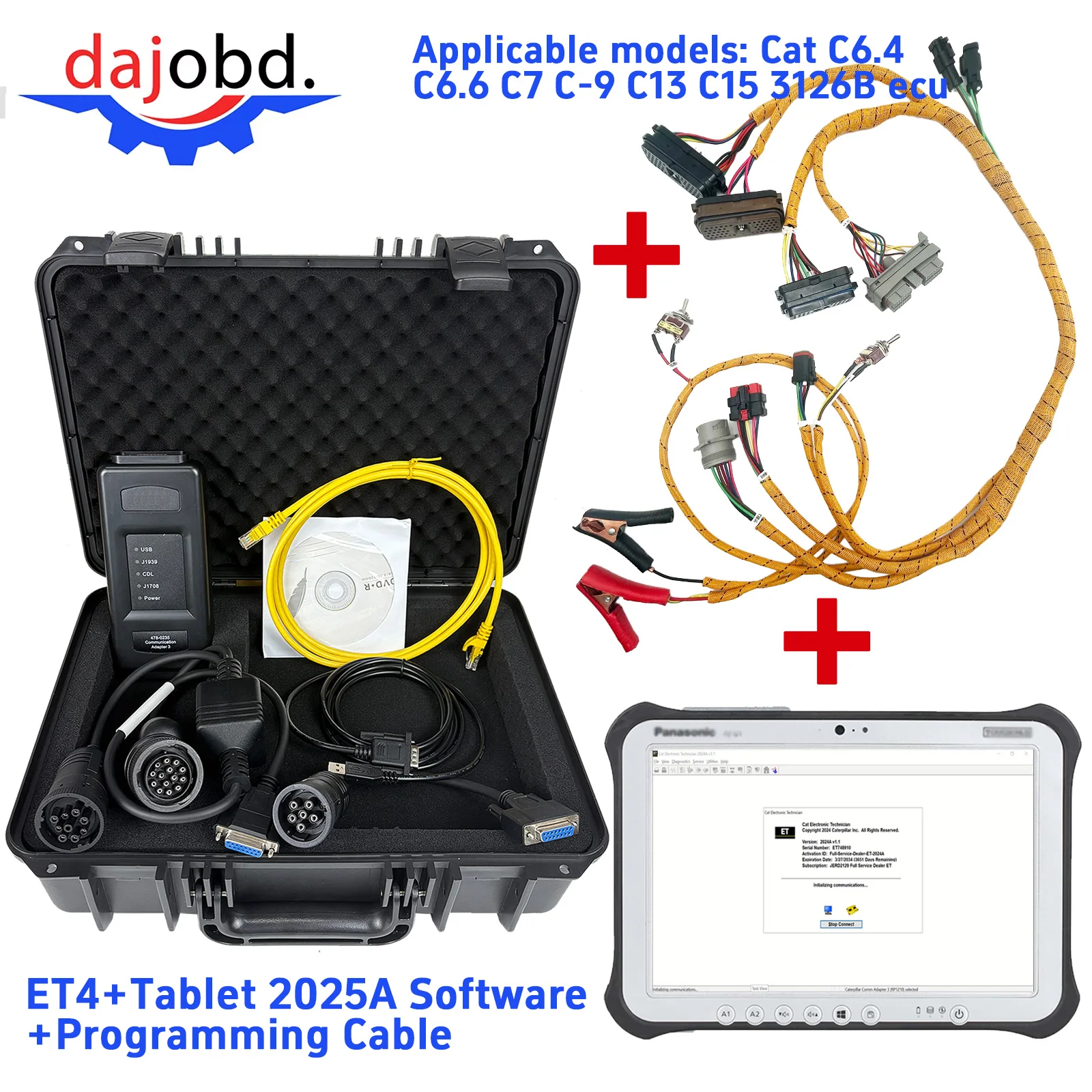 CAT ET4 Heavy Truck Excavator Diagnostic Tool with Tablet/laptop 2025A Software Ethernet Programming Cable for Caterpillar Duty