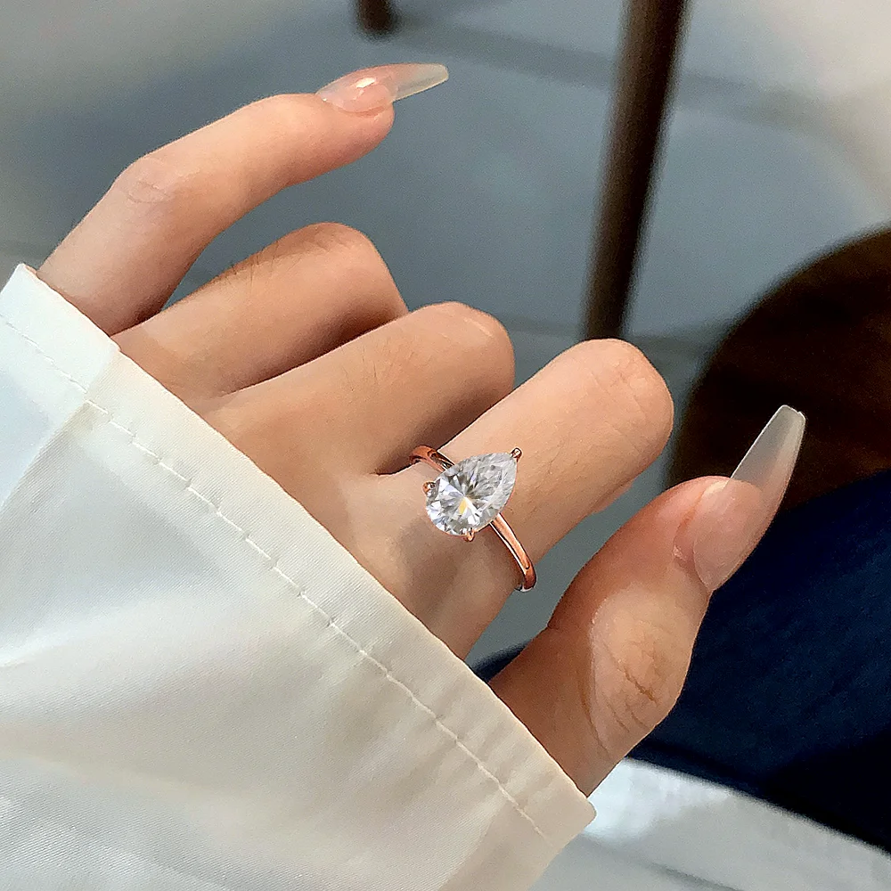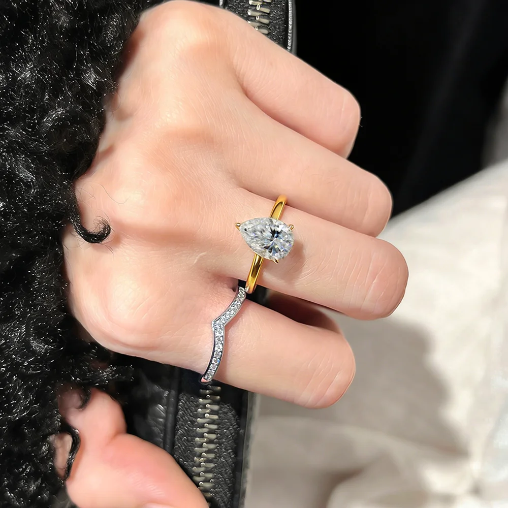 Main Stone Size: 1/2/3/4CT Pear Cut Real Moissanite(Pass Diamond Pen Test)
